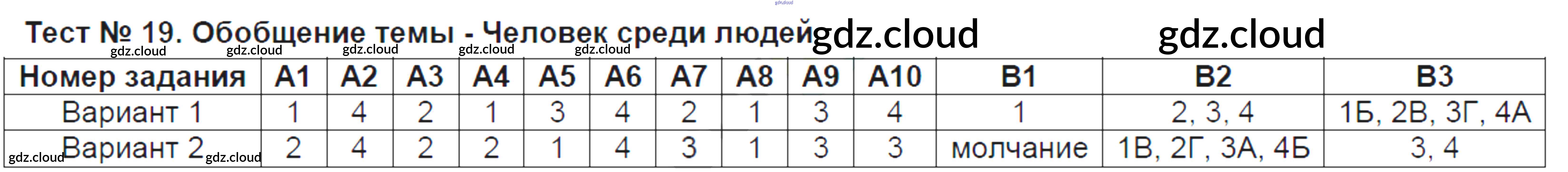 Ответ на задание Тест №19. Обобщение темы - Человек среди людей Контрольно-измерительные материалы (КИМ) Обществознание за 6 (шестой) класс Поздеева 2017