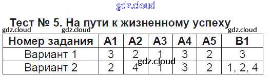 Ответ на задание Тест №5. На пути к жизненному успеху Контрольно-измерительные материалы (КИМ) Обществознание за 6 (шестой) класс Поздеева 2017