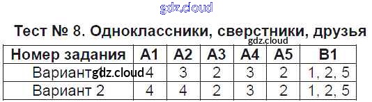 Ответ на задание Тест №8. Одноклассники, сверстники, друзья Контрольно-измерительные материалы (КИМ) Обществознание за 6 (шестой) класс Поздеева 2017