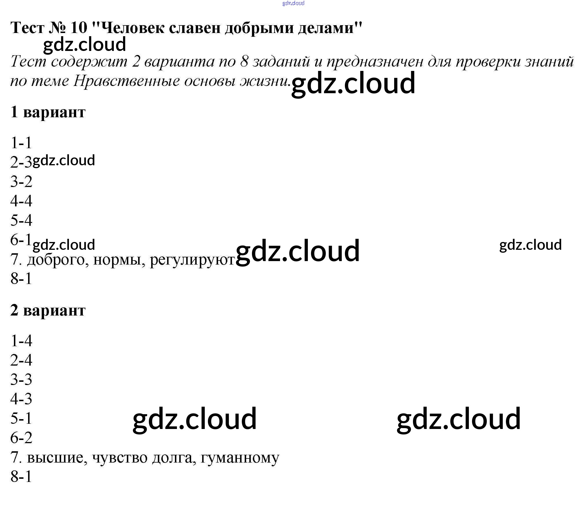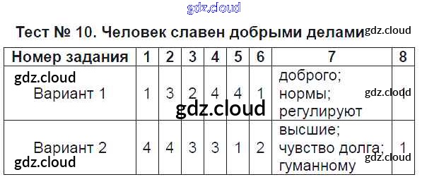 Ответ на задание Тест №10. Человек славен добрыми делами Тесты Обществознание за 6 (шестой) класс Коваль УМК 2016