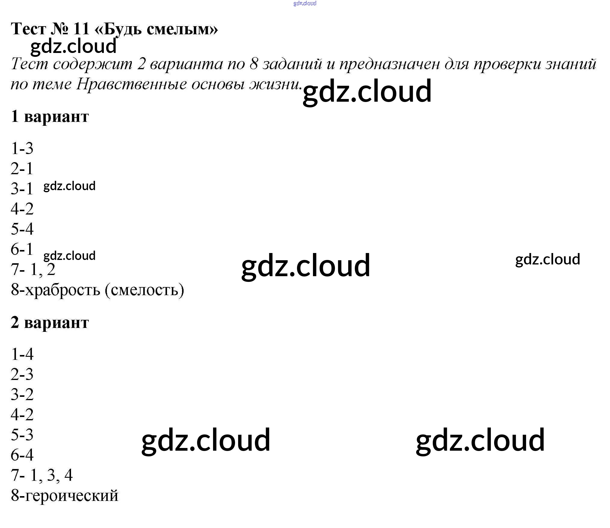 Ответ на задание Тест №11. Будь смелым Тесты Обществознание за 6 (шестой) класс Коваль УМК 2016