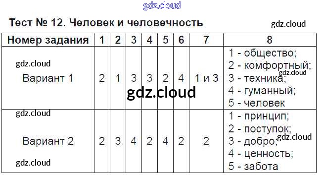 Ответ на задание Тест №12. Человек и человечность Тесты Обществознание за 6 (шестой) класс Коваль УМК 2016