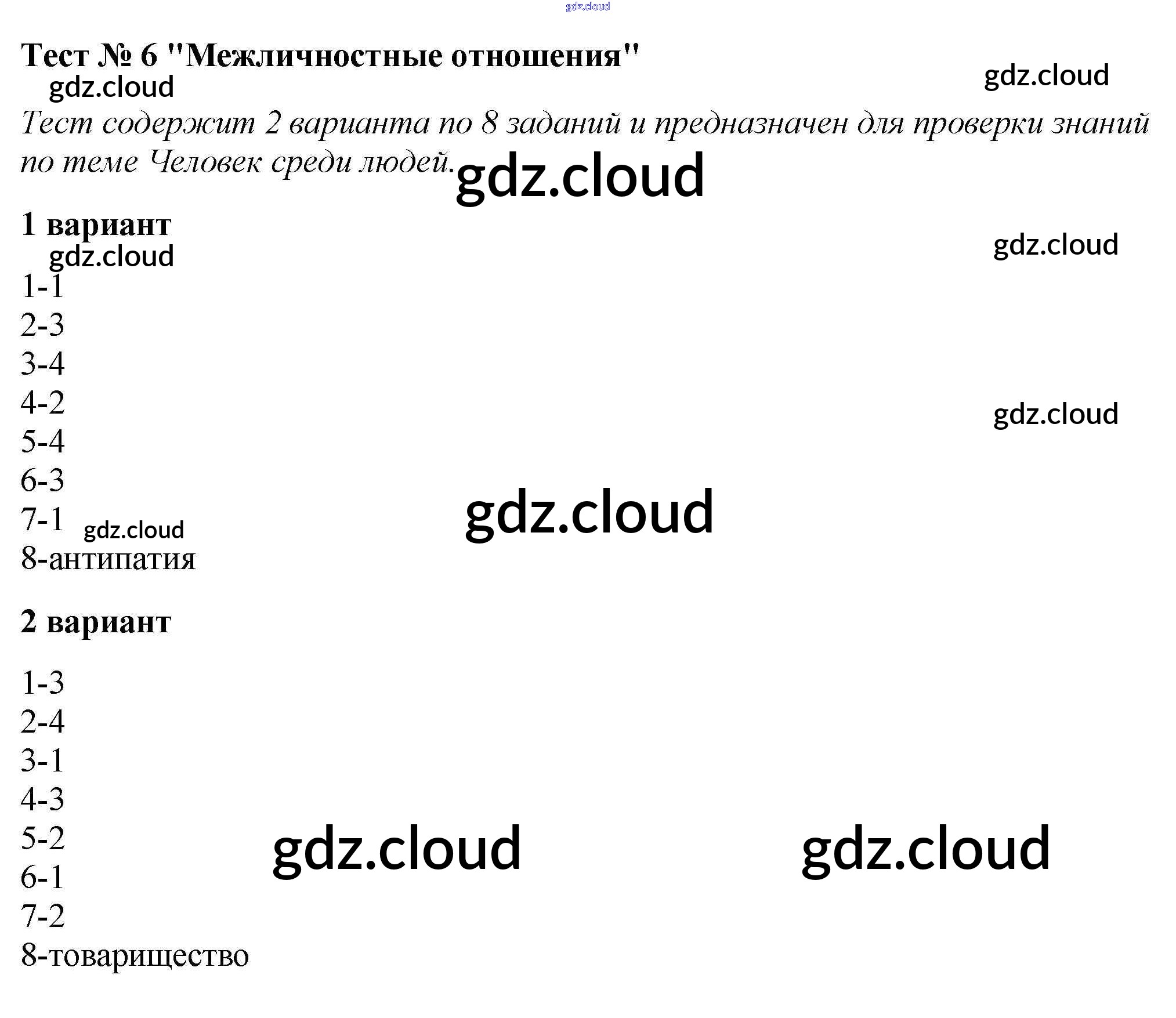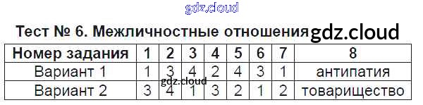 Ответ на задание Тест №6. Межличностные отношения Тесты Обществознание за 6 (шестой) класс Коваль УМК 2016
