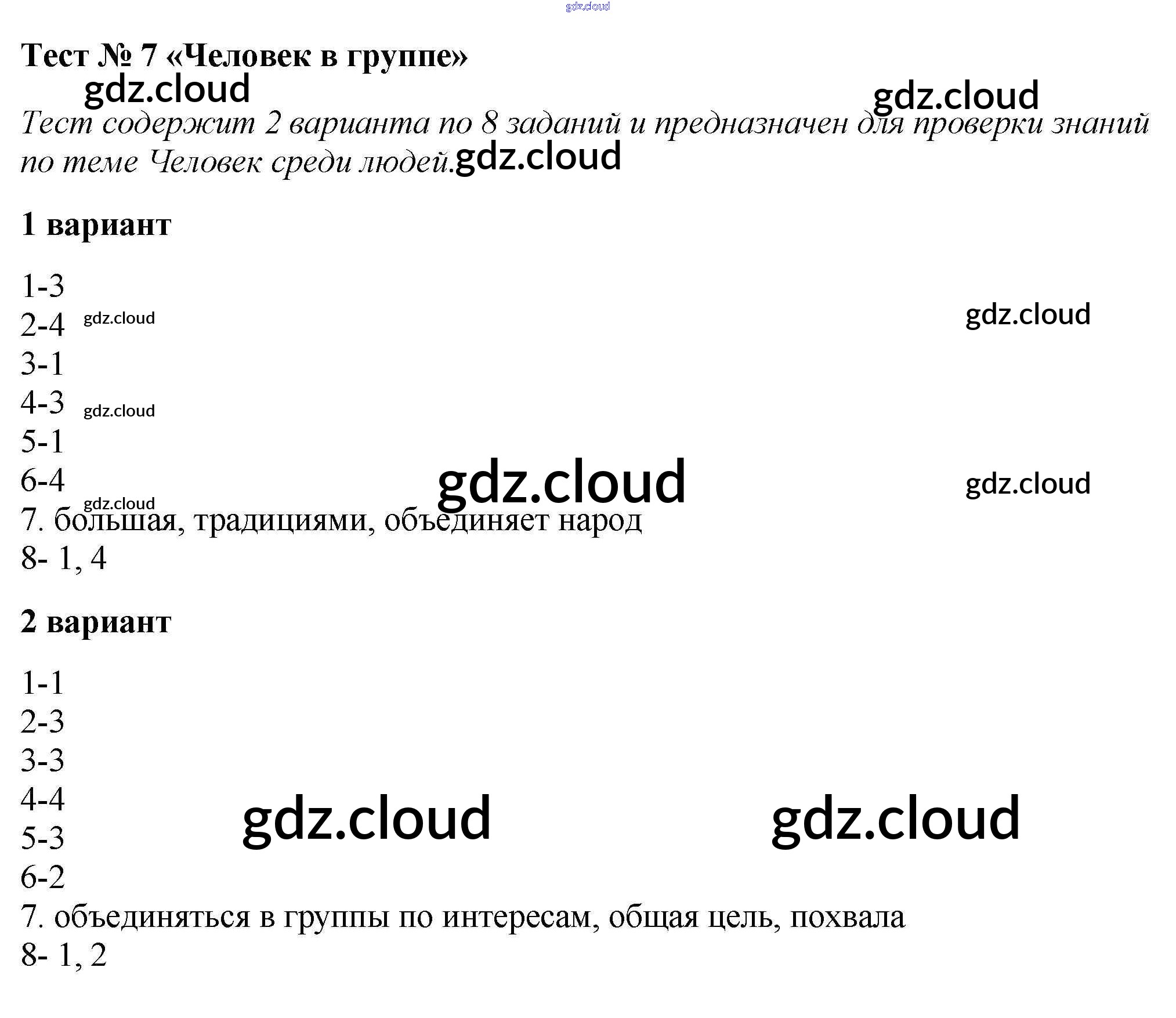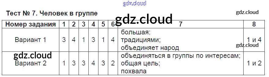 Ответ на задание Тест №7. Человек в группе Тесты Обществознание за 6 (шестой) класс Коваль УМК 2016