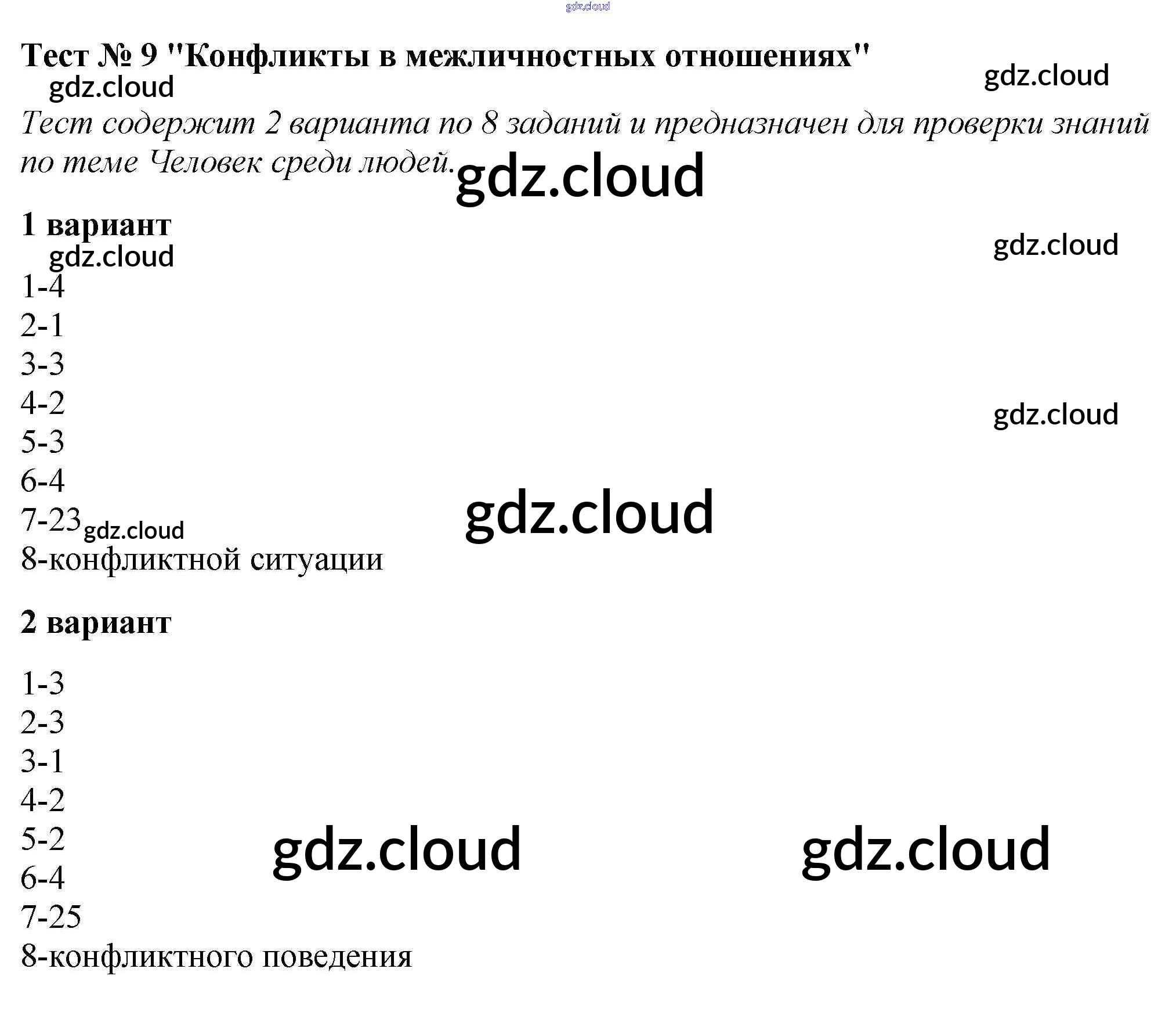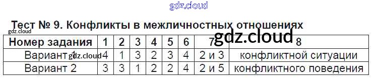 Ответ на задание Тест №9. Конфликты в межличностных отношениях Тесты Обществознание за 6 (шестой) класс Коваль УМК 2016