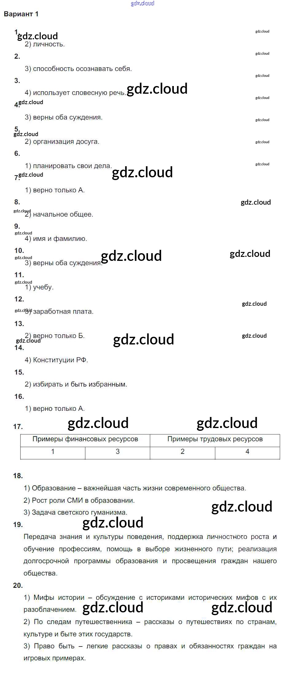 Ответ на задание вариант-1 Тематический контроль Обществознание за 5, 6 (пятый, шестой) класс Лобанов 2017