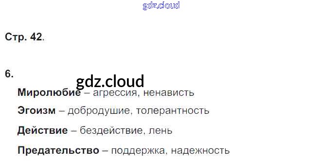 Ответ на задание стр. 42 Рабочая тетрадь Обществознание за 6 (шестой) класс Соболева УМК 2019 ФГОС онлайн и без номера телефона.