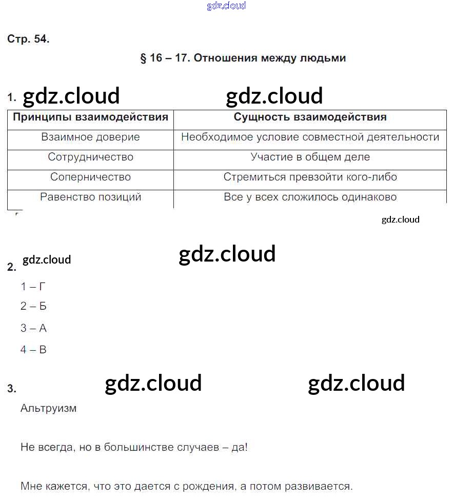 Ответ на задание стр. 54 Рабочая тетрадь Обществознание за 6 (шестой) класс Соболева УМК 2019 ФГОС онлайн и без номера телефона.