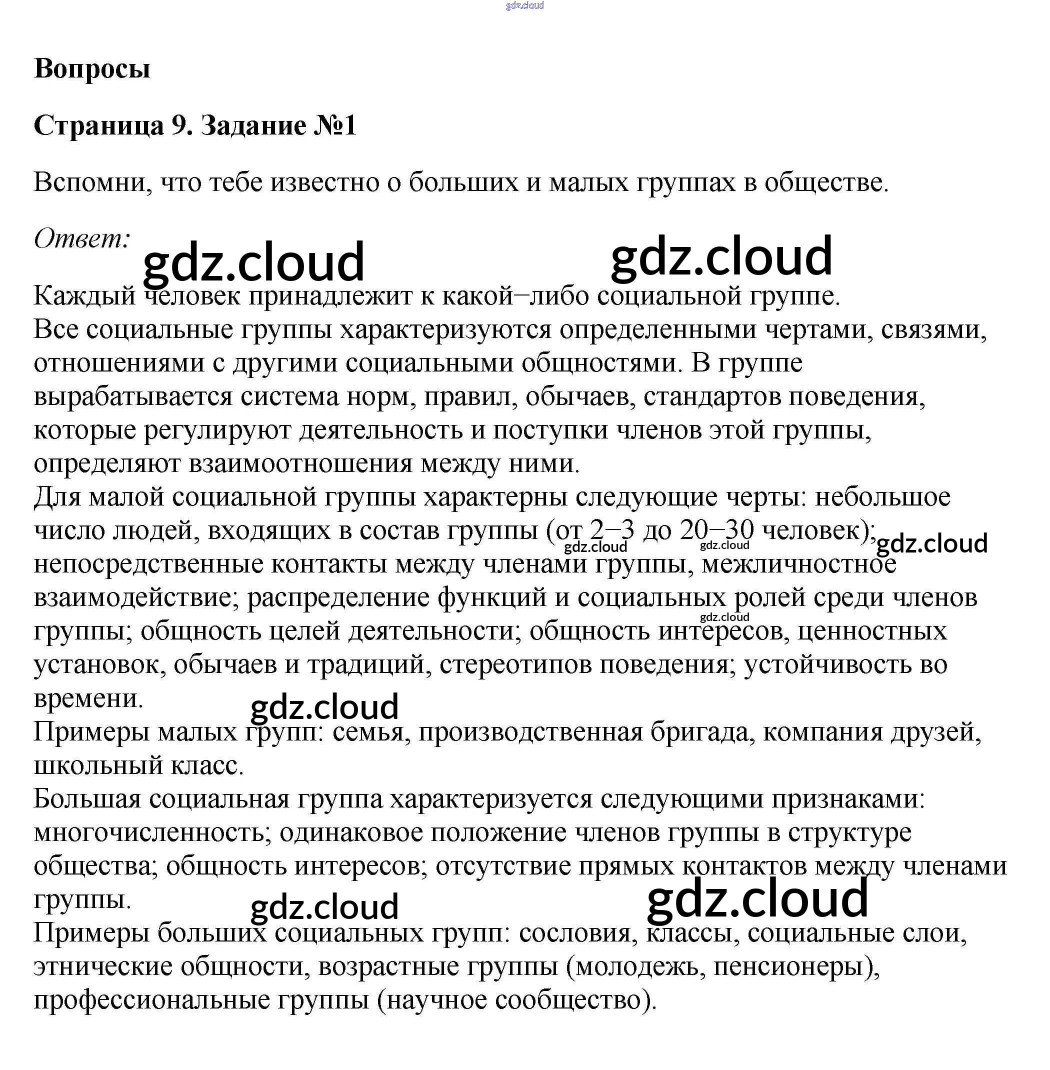 Ответ на задание стр.9 Учебник Обществознание за 7 (седьмой) класс Боголюбов, Городецкая, Иванова, Лискова, Матвеев, Котова, Рутковская Академический школьный учебник 2015, 2019