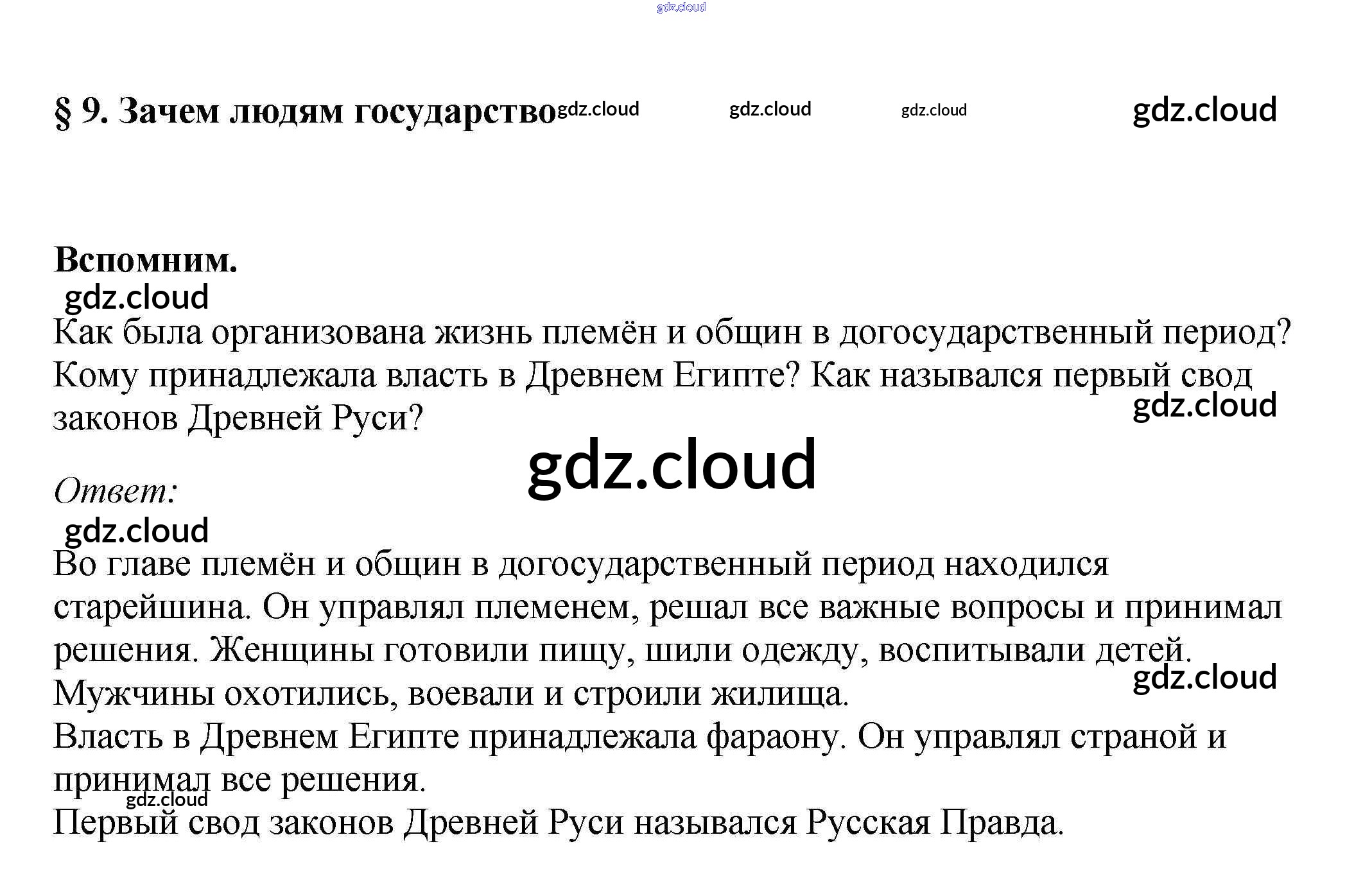 Вспомним §9. Зачем людям государство по Обществознанию 7 класс Учебник Боголюбов Академический школьный учебник Просвещение, Просвещение