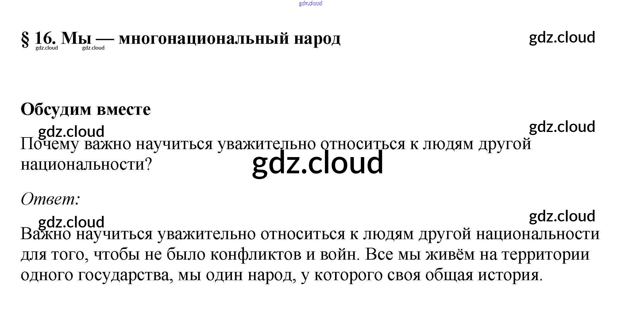 Обсудим вместе §16. Мы - многонациональный народ по Обществознанию 7 класс Учебник Боголюбов Академический школьный учебник Просвещение, Просвещение