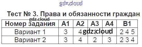 Ответ на задание Тест №3. Права и обязанности граждан Контрольно-измерительные материалы (КИМ) Обществознание за 7 (седьмой) класс Волкова 2017