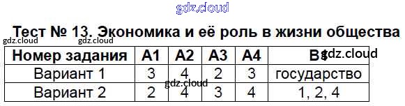 Ответ на задание Тест №13. Экономика и её роль в жизни общества Контрольно-измерительные материалы (КИМ) Обществознание за 8 (восьмой) класс Поздеев 2017