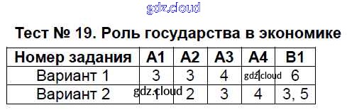 Ответ на задание Тест №19. Роль государства в экономике Контрольно-измерительные материалы (КИМ) Обществознание за 8 (восьмой) класс Поздеев 2017