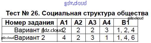 Ответ на задание Тест №26. Социальная структура общества Контрольно-измерительные материалы (КИМ) Обществознание за 8 (восьмой) класс Поздеев 2017