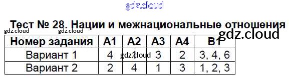 Ответ на задание Тест №28. Нации и межнациональные отношения Контрольно-измерительные материалы (КИМ) Обществознание за 8 (восьмой) класс Поздеев 2017