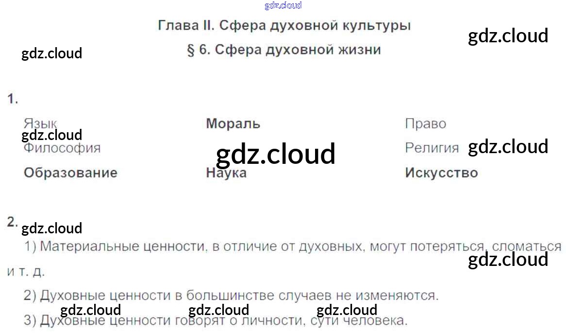 Ответы к главе 2. Сфера духовной культуры по Обществознанию 8 класс Рабочая тетрадь Котова Просвещение