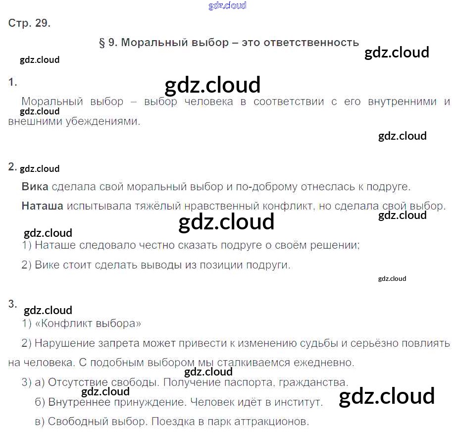 Ответ на задание стр.29 Рабочая тетрадь Обществознание за 8 (восьмой) класс Котова, Лискова 2017