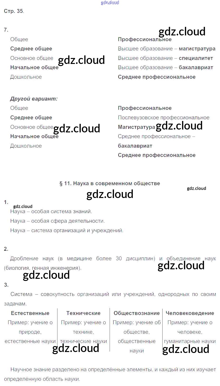 Ответ на задание стр.35 Рабочая тетрадь Обществознание за 8 (восьмой) класс Котова, Лискова 2017