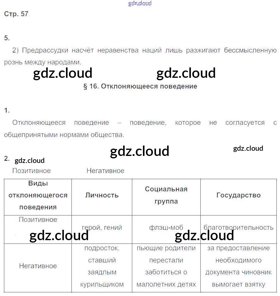 Ответ на задание стр.57 Рабочая тетрадь Обществознание за 8 (восьмой) класс Котова, Лискова 2017