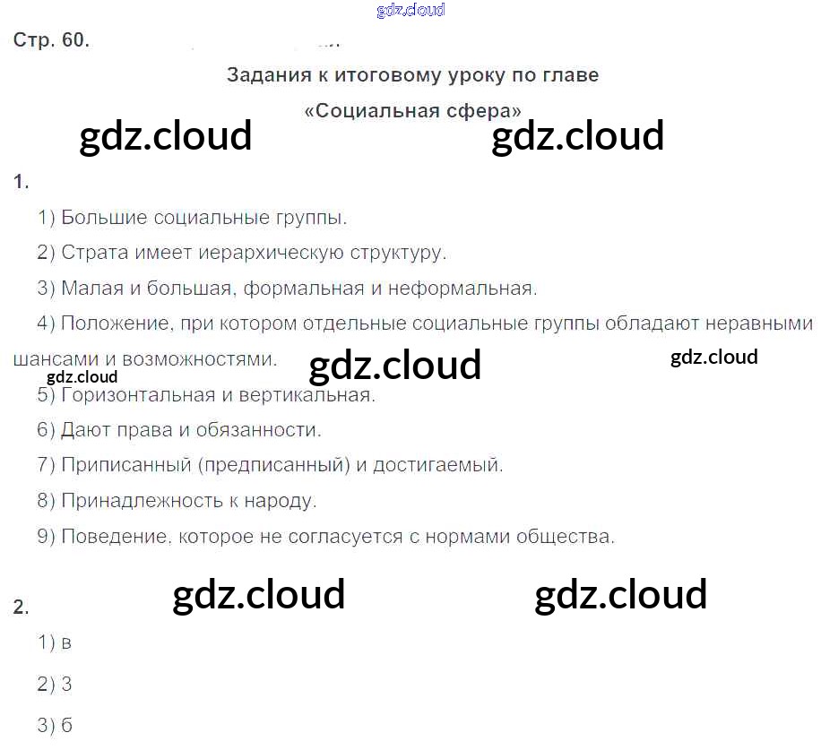 Ответ на задание стр.60 Рабочая тетрадь Обществознание за 8 (восьмой) класс Котова, Лискова 2017