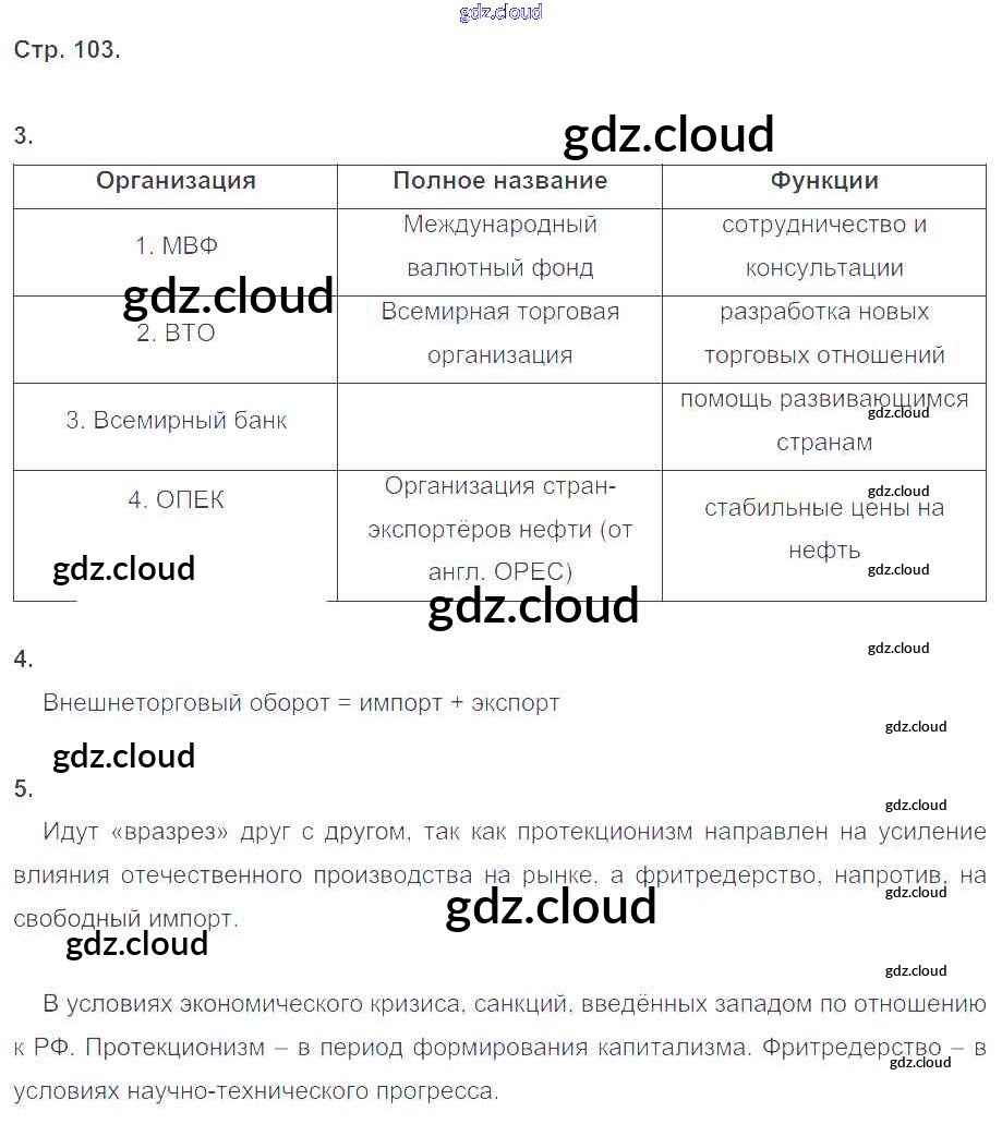 Ответ на задание стр.103 Рабочая тетрадь Обществознание за 8 (восьмой) класс Котова, Лискова 2017