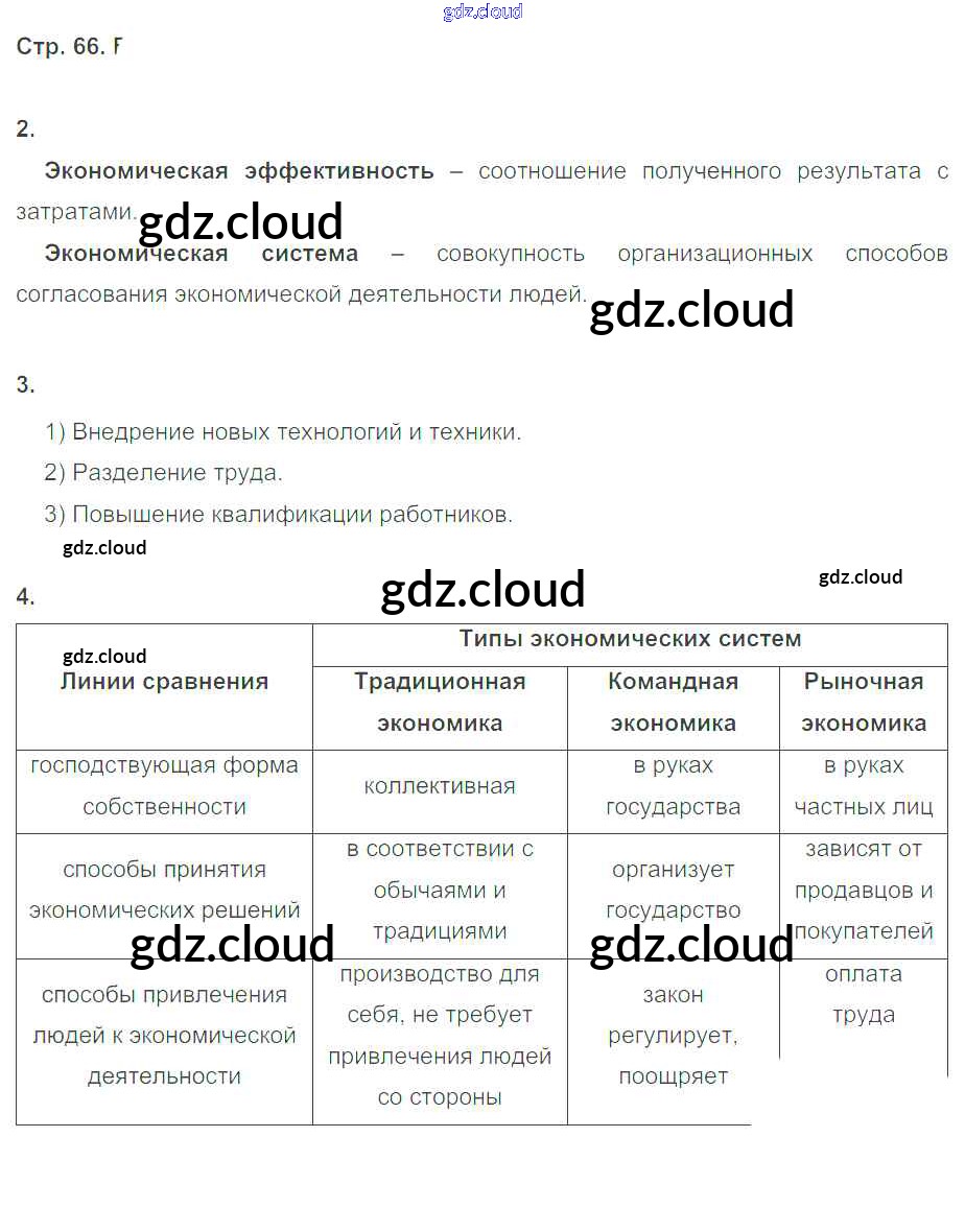 Ответ на задание стр.66 Рабочая тетрадь Обществознание за 8 (восьмой) класс Котова, Лискова 2017