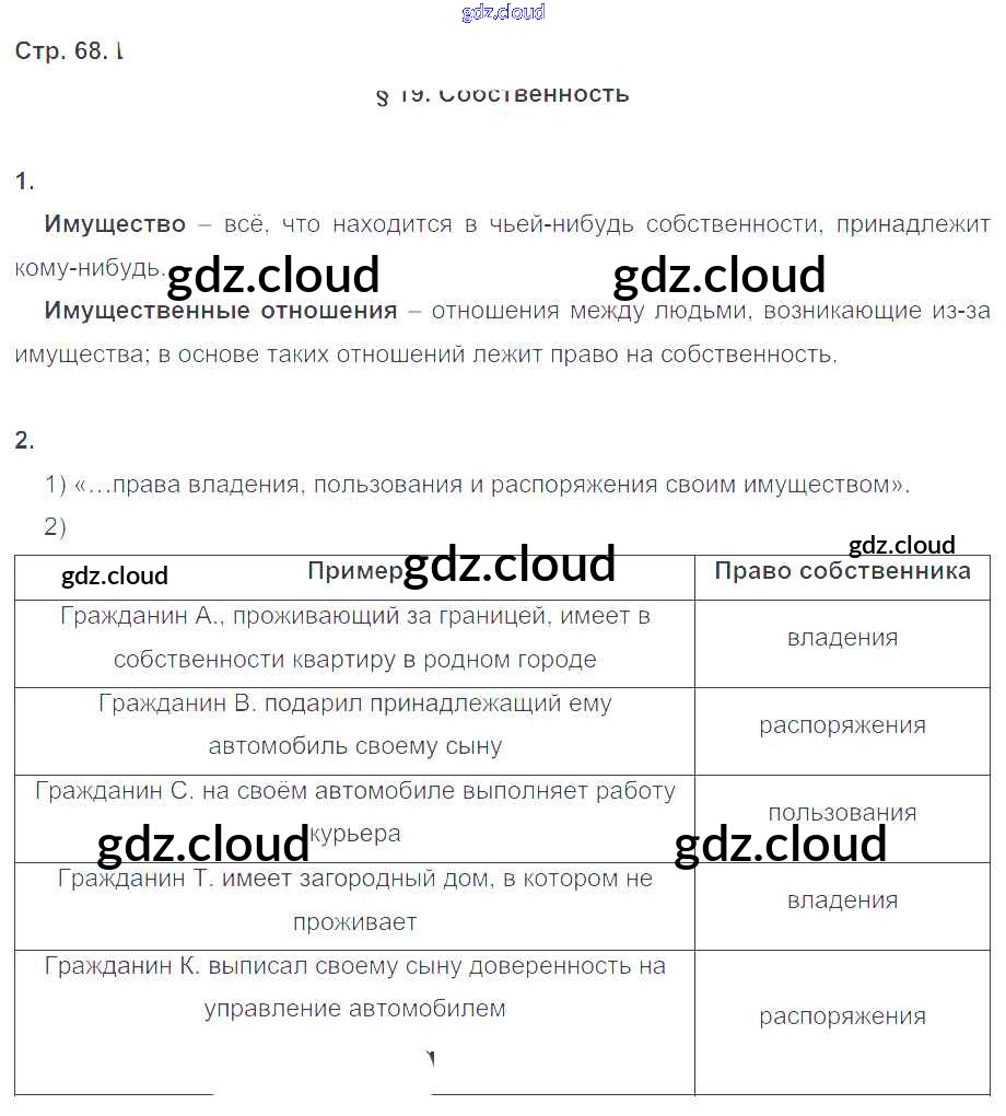 Ответ на задание стр.68 Рабочая тетрадь Обществознание за 8 (восьмой) класс Котова, Лискова 2017