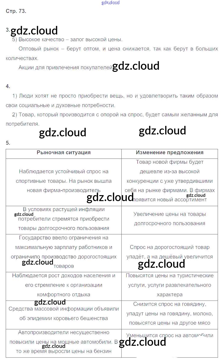 Ответ на задание стр.73 Рабочая тетрадь Обществознание за 8 (восьмой) класс Котова, Лискова 2017
