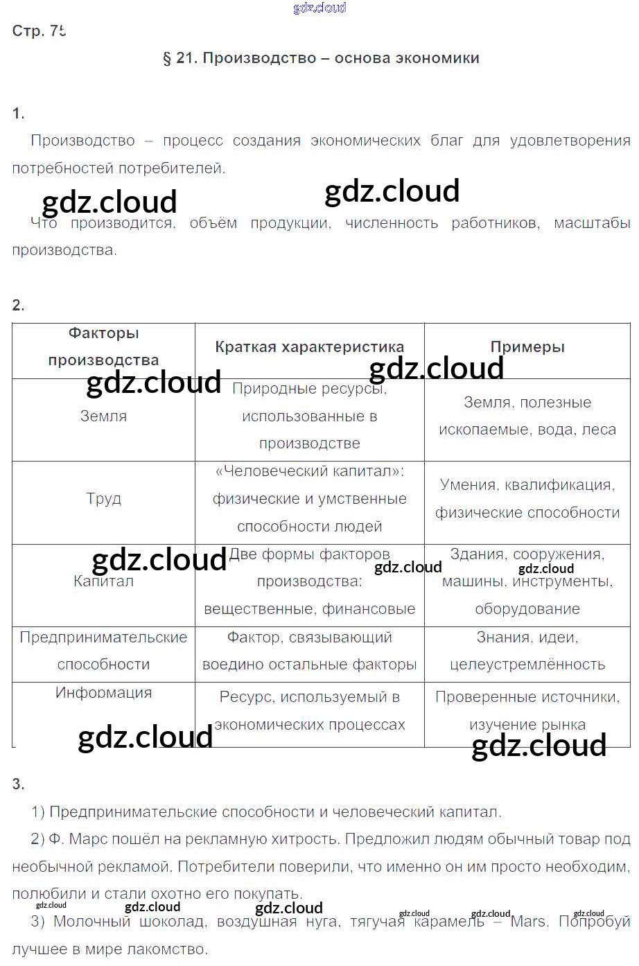 Ответ на задание стр.75 Рабочая тетрадь Обществознание за 8 (восьмой) класс Котова, Лискова 2017