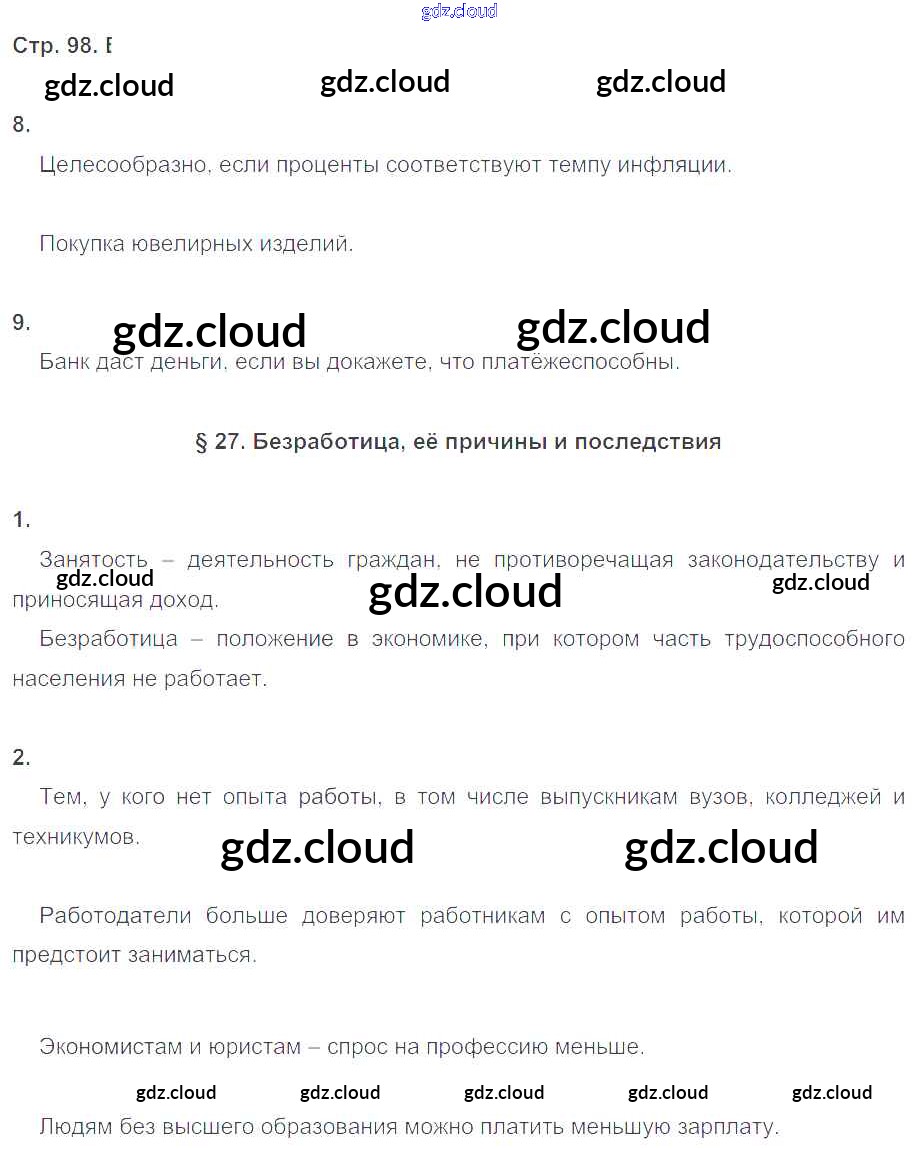 Ответ на задание стр.98 Рабочая тетрадь Обществознание за 8 (восьмой) класс Котова, Лискова 2017