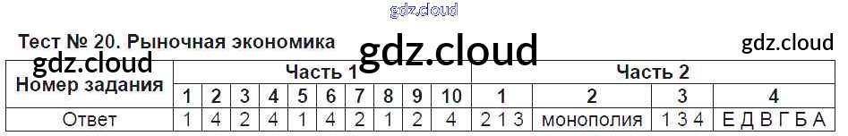Ответ на задание Тест №20. Рыночная экономика Тесты Обществознание за 8 (восьмой) класс Краюшкина УМК 2017 ФГОС онлайн и без номера телефона.