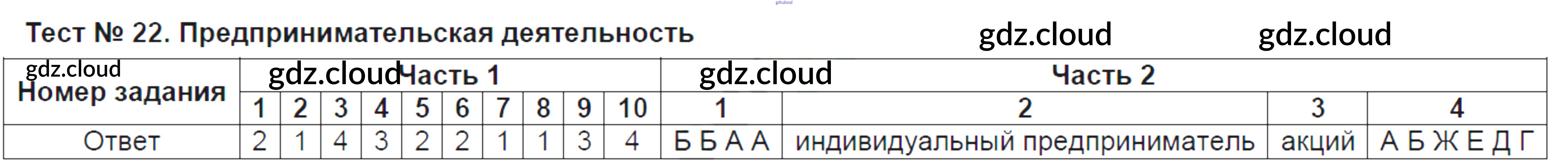 Ответ на задание Тест №22. Предпринимательская деятельность Тесты Обществознание за 8 (восьмой) класс Краюшкина УМК 2017 ФГОС онлайн и без номера телефона.