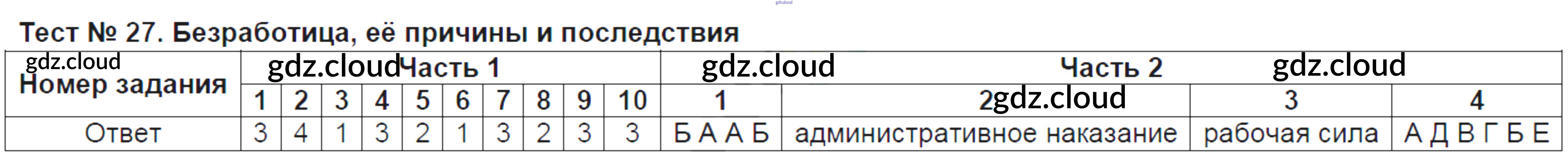 Ответ на задание Тест №27. Безработица, её причины и последствия Тесты Обществознание за 8 (восьмой) класс Краюшкина УМК 2017 ФГОС онлайн и без номера телефона.