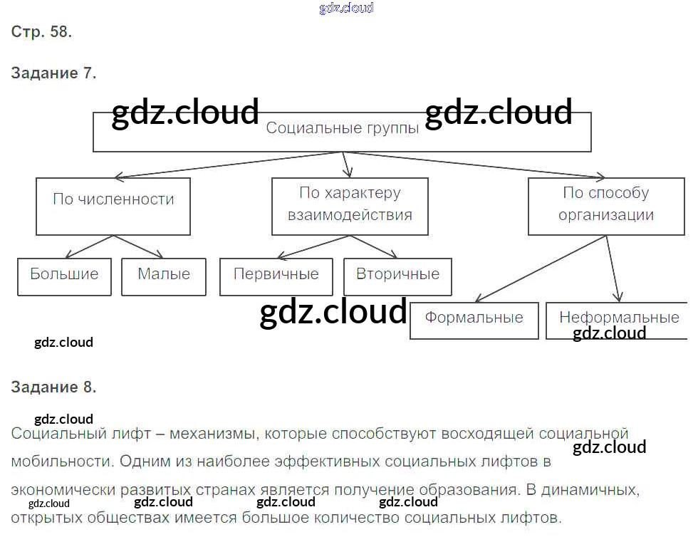 Ответ на задание 58 Рабочая тетрадь Обществознание за 8 (восьмой) класс Митькин УМК 2017 ФГОС онлайн и без номера телефона.