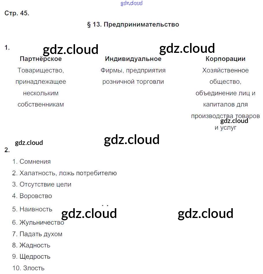 Ответ на задание 45 Рабочая тетрадь Обществознание за 8 (восьмой) класс Хромова 2015 ФГОС онлайн и без номера телефона.