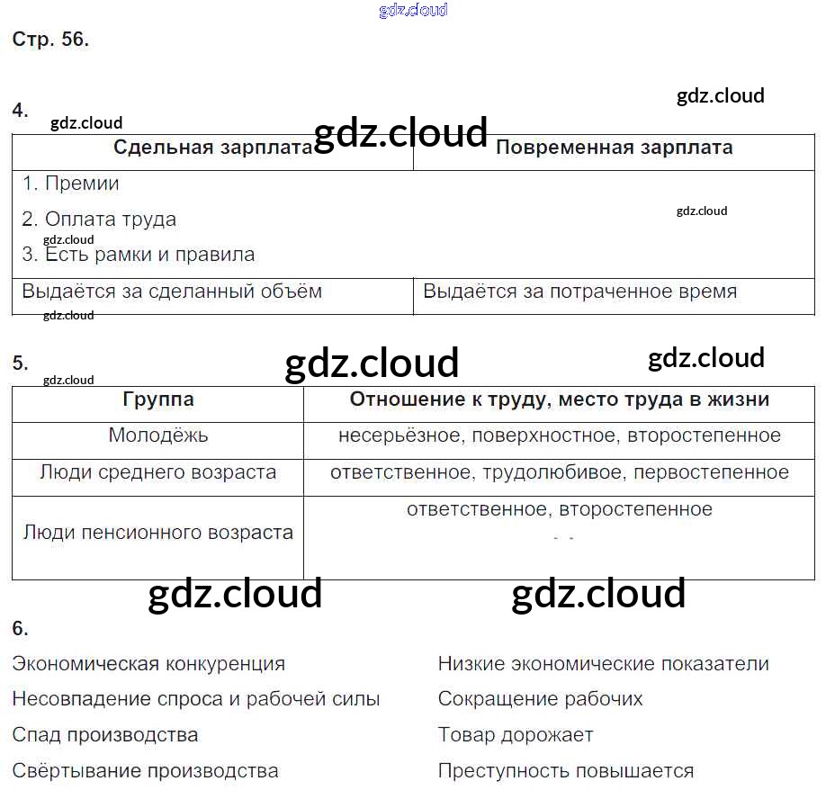 Ответ на задание 56 Рабочая тетрадь Обществознание за 8 (восьмой) класс Хромова 2015 ФГОС онлайн и без номера телефона.