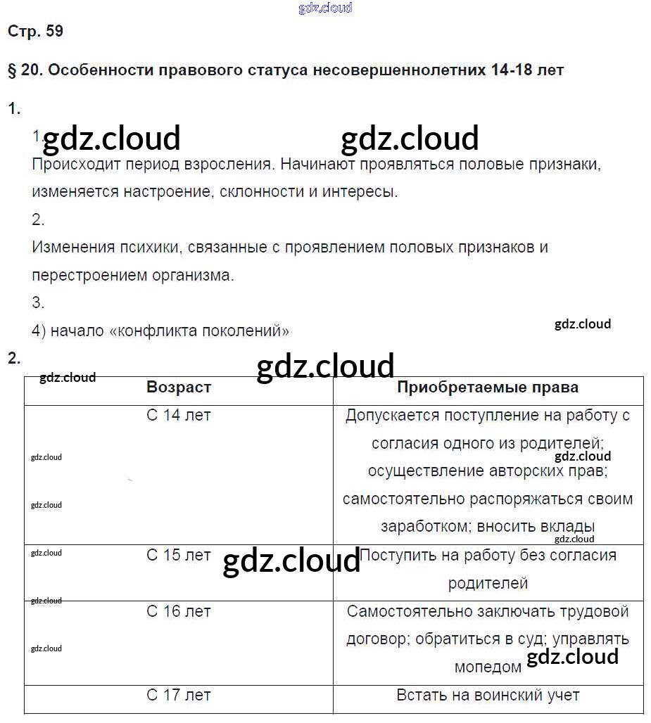 Ответ на задание 59 Рабочая тетрадь Обществознание за 8 (восьмой) класс Соболева, Воронцов Алгоритм успеха 2018