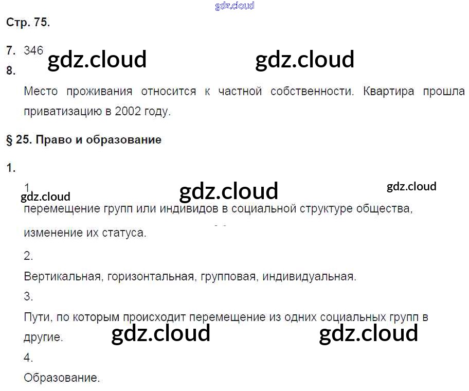 Ответ на задание 75 Рабочая тетрадь Обществознание за 8 (восьмой) класс Соболева, Воронцов Алгоритм успеха 2018