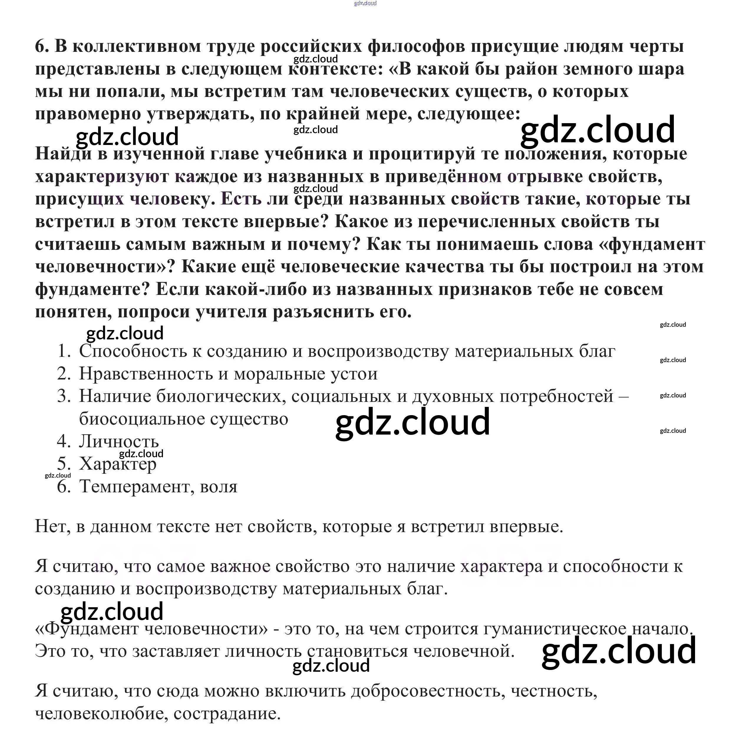 Ответ на задание 6 Учебник Обществознание за 8 (восьмой) класс Боголюбов, Городецкая, Кинкулькин, Иванова, Матвеев, Котова, Рутковская, Лазебникова Академический школьный учебник 2014