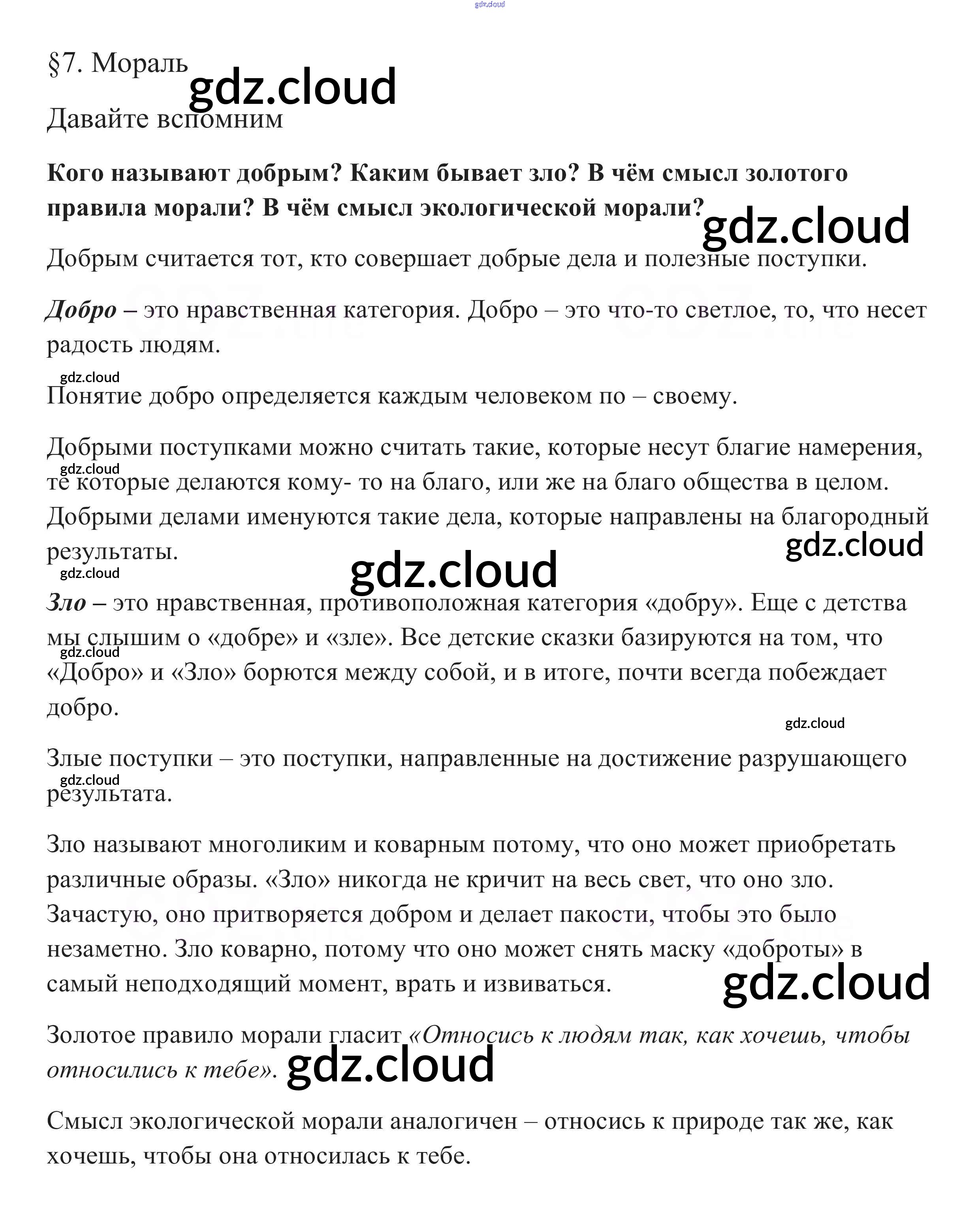 Вспомним §7. Мораль по Обществознанию 8 класс Учебник Боголюбов Академический школьный учебник Просвещение