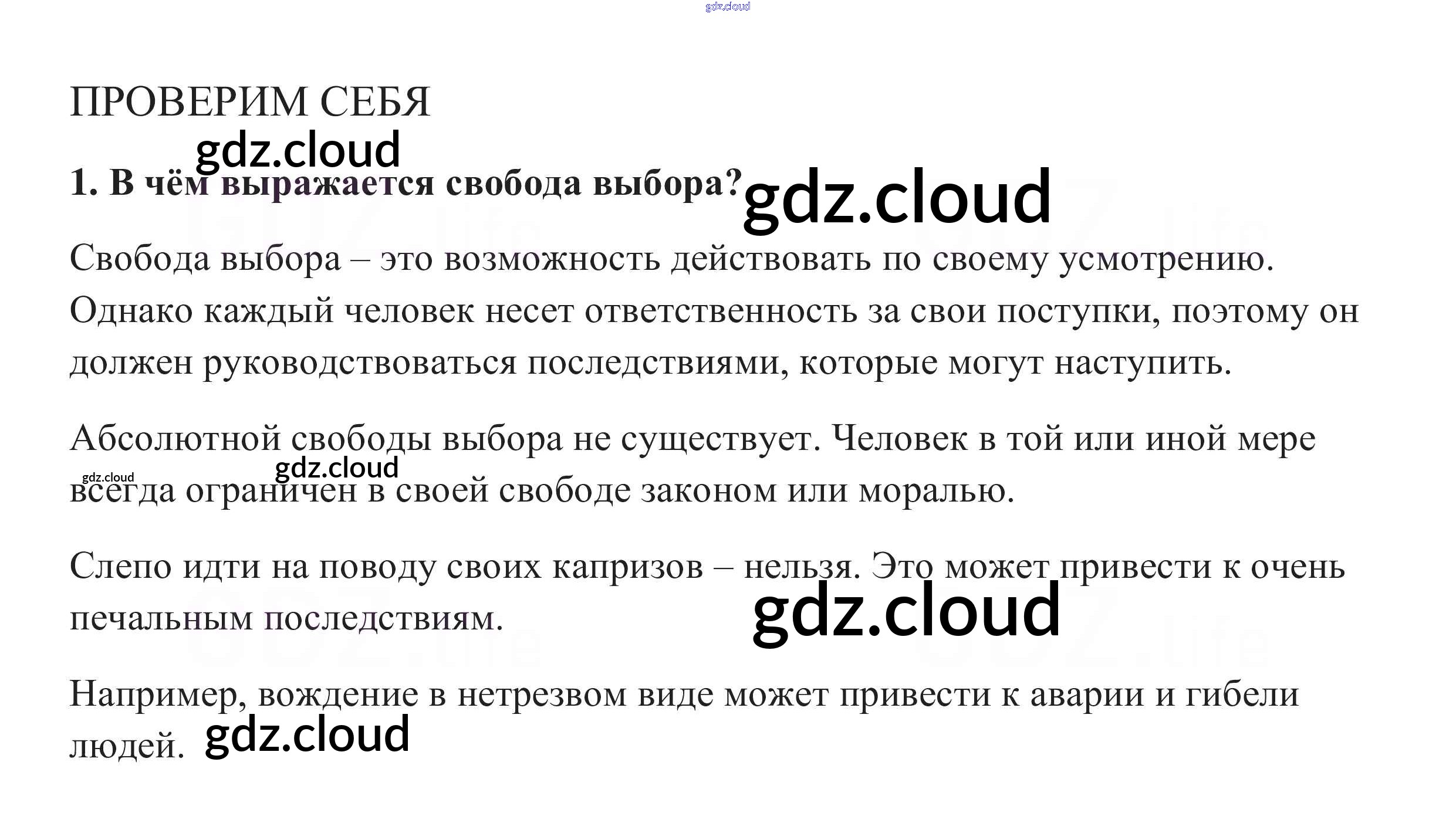 Проверим себя §9. Моральный выбор - это ответственность по Обществознанию 8 класс Учебник Боголюбов Академический школьный учебник Просвещение