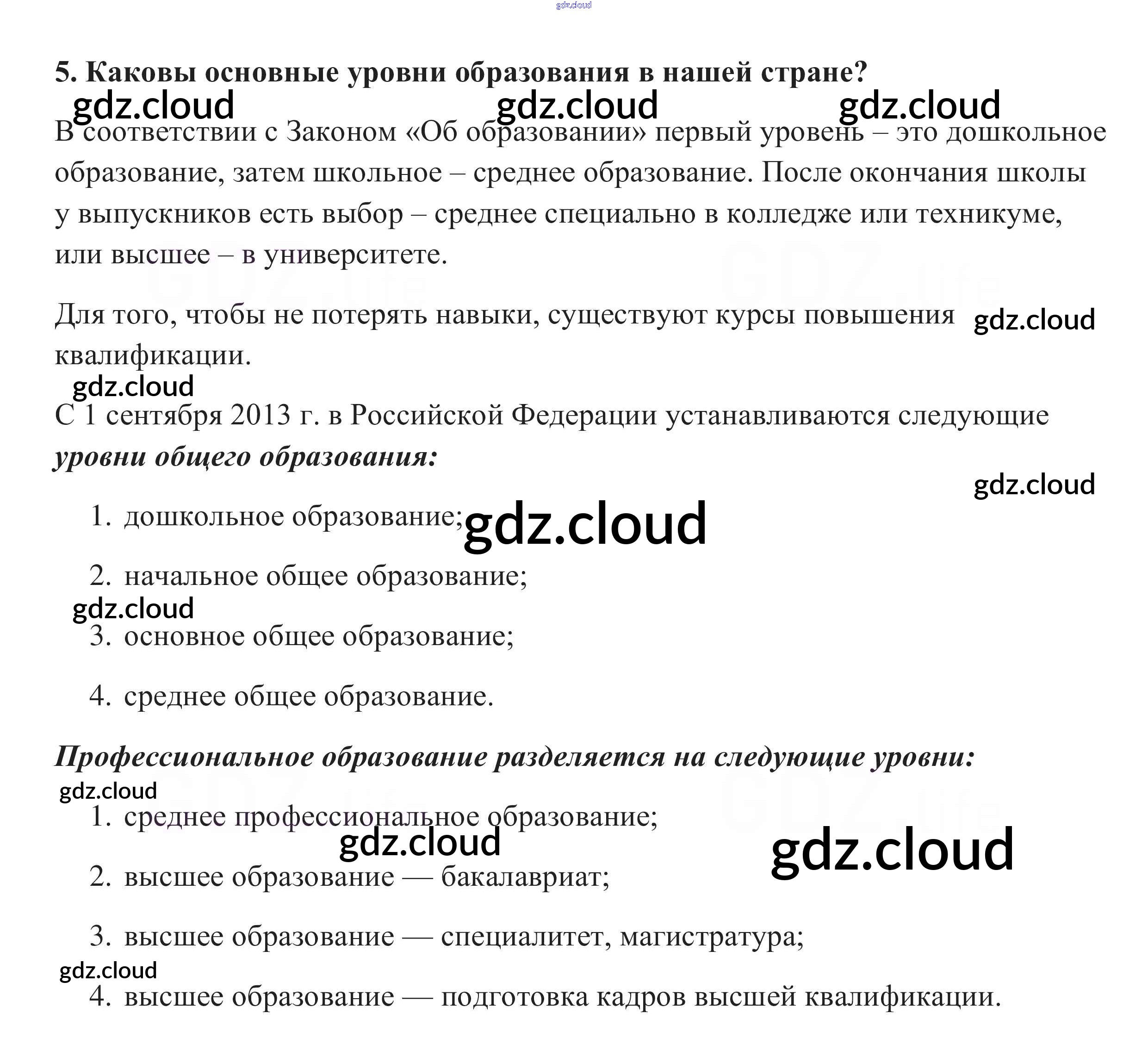 Ответ на задание 5 Учебник Обществознание за 8 (восьмой) класс Боголюбов, Городецкая, Кинкулькин, Иванова, Матвеев, Котова, Рутковская, Лазебникова Академический школьный учебник 2014