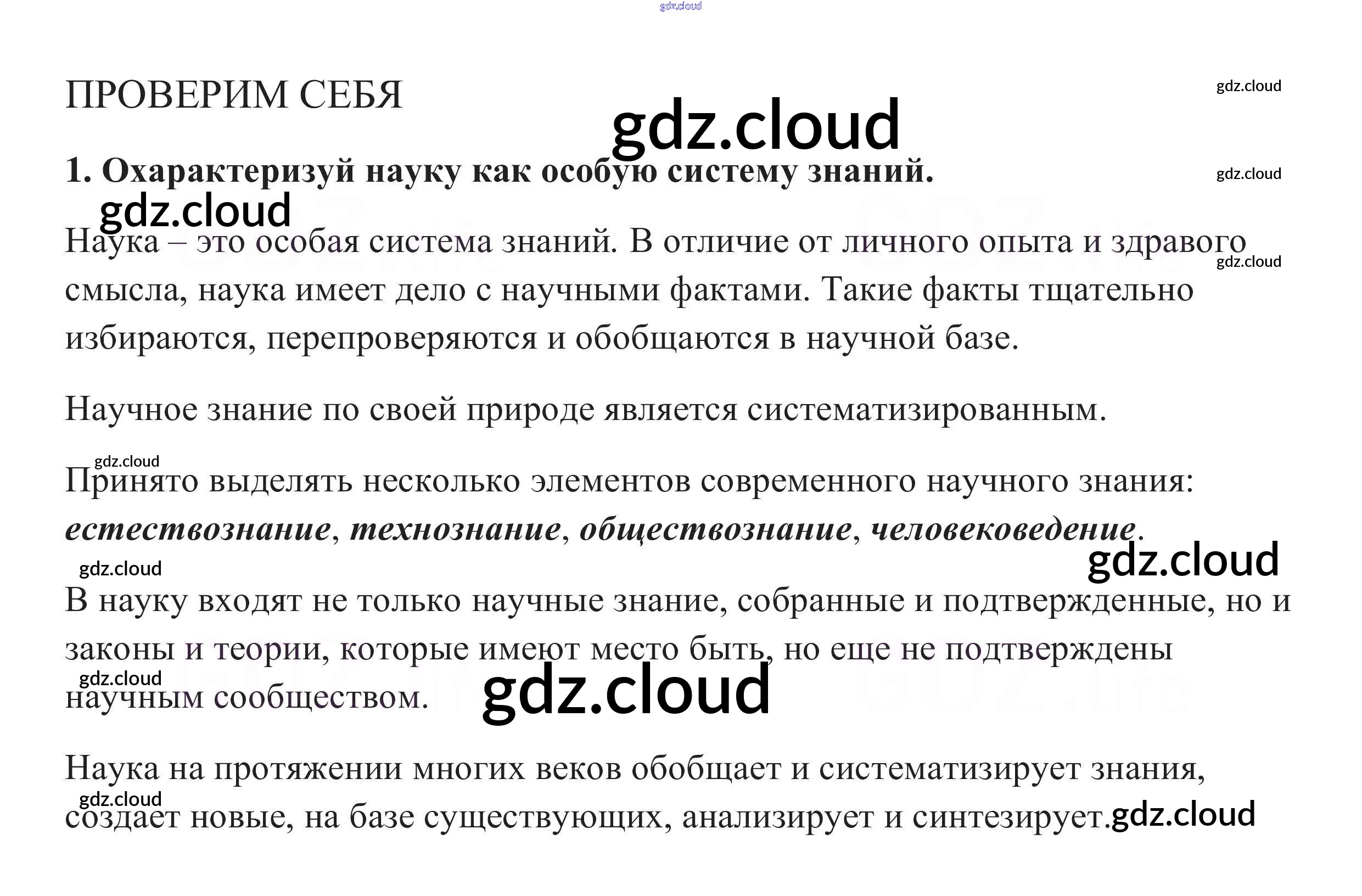 Проверим себя §11. Наука в современном обществе по Обществознанию 8 класс Учебник Боголюбов Академический школьный учебник Просвещение