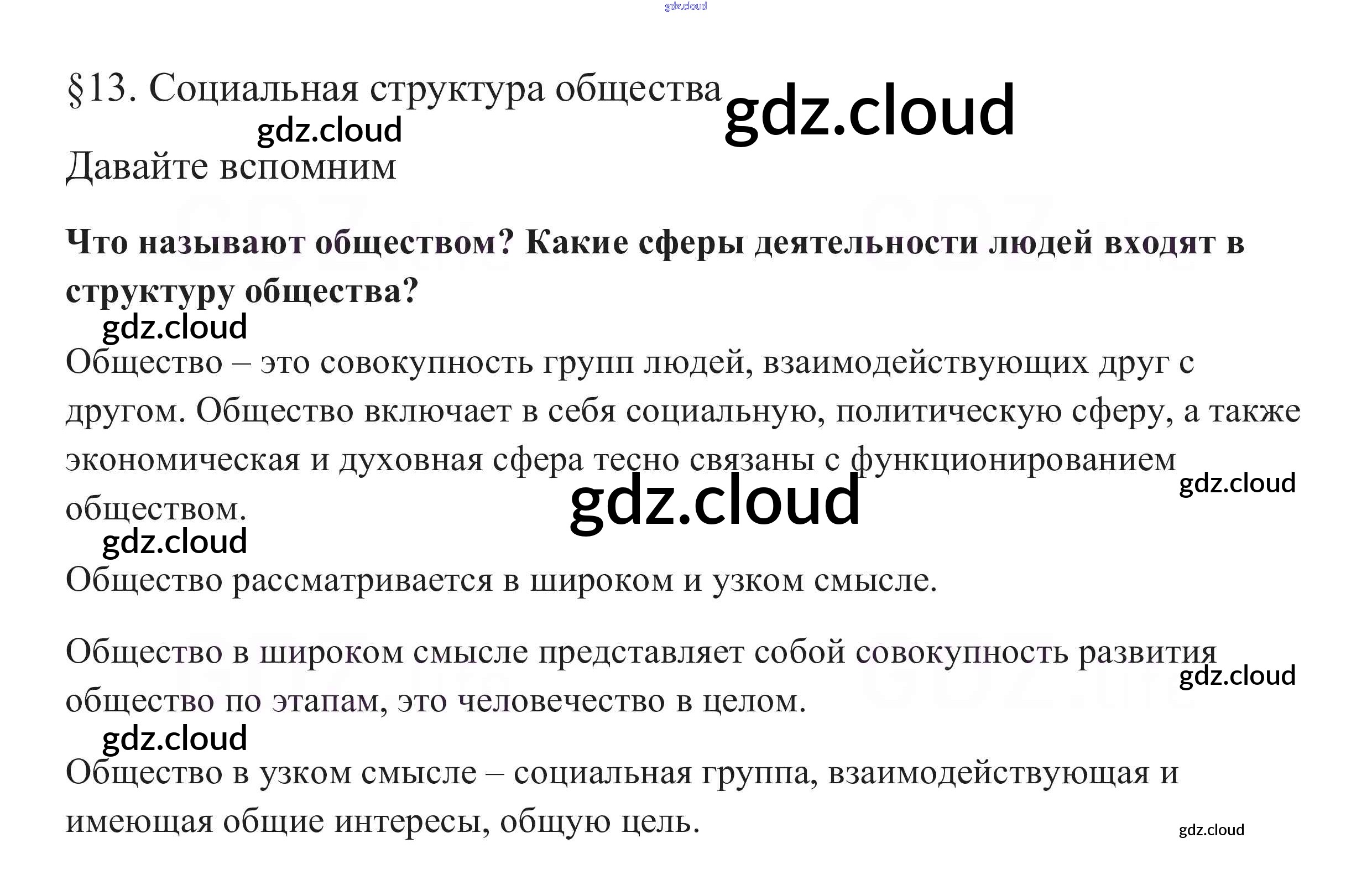 Вспомним §13. Социальная структура общества по Обществознанию 8 класс Учебник Боголюбов Академический школьный учебник Просвещение