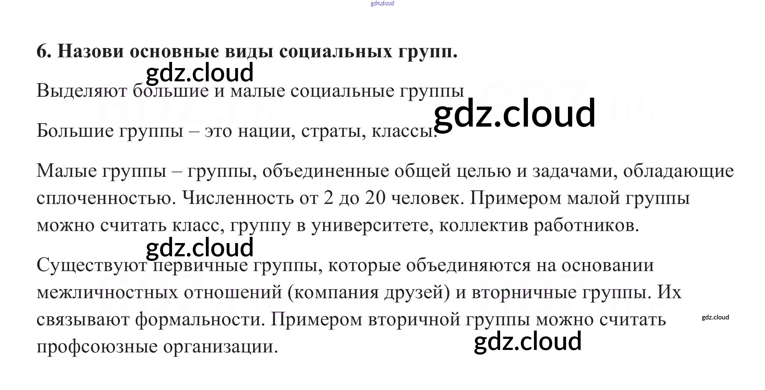 Ответ на задание 6 Учебник Обществознание за 8 (восьмой) класс Боголюбов, Городецкая, Кинкулькин, Иванова, Матвеев, Котова, Рутковская, Лазебникова Академический школьный учебник 2014