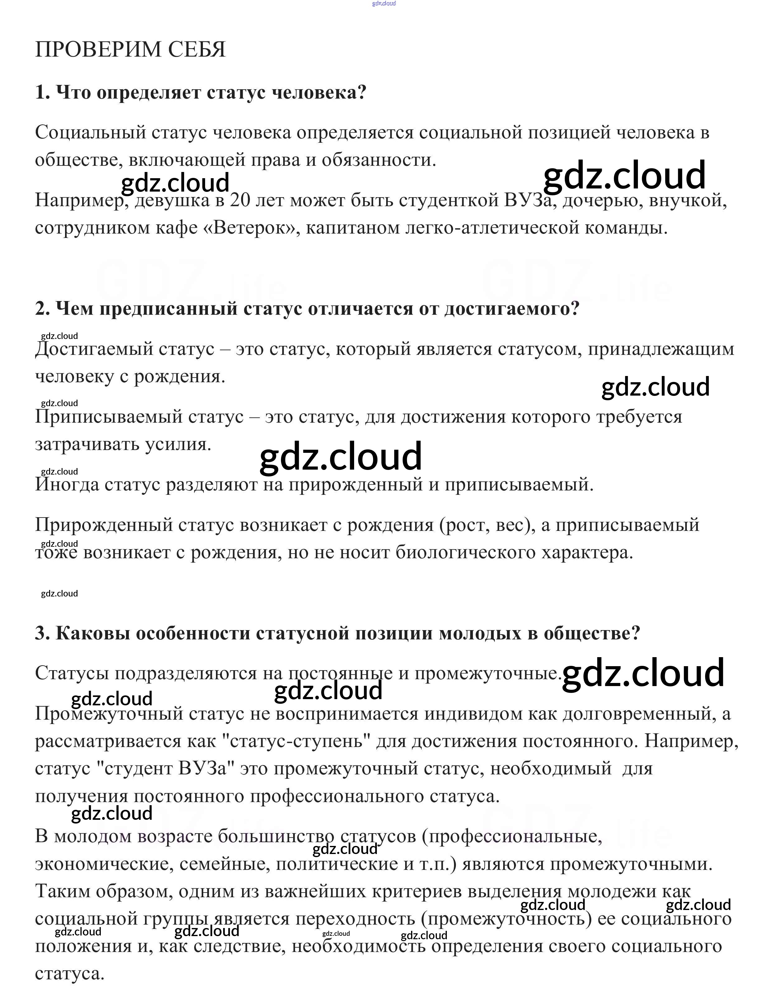 Проверим себя §14. Социальные статусы и роли по Обществознанию 8 класс Учебник Боголюбов Академический школьный учебник Просвещение