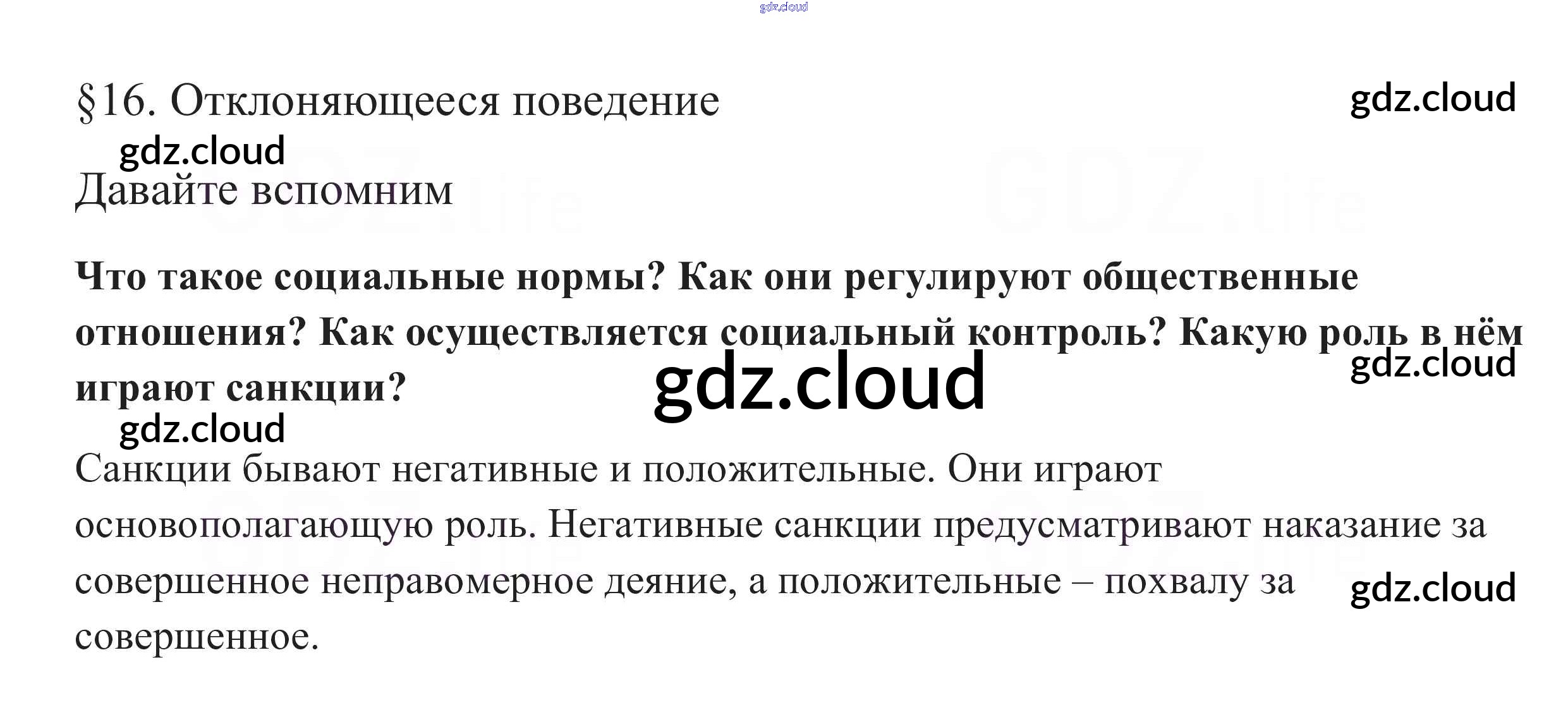 Вспомним §16. Отклоняющееся поведение по Обществознанию 8 класс Учебник Боголюбов Академический школьный учебник Просвещение