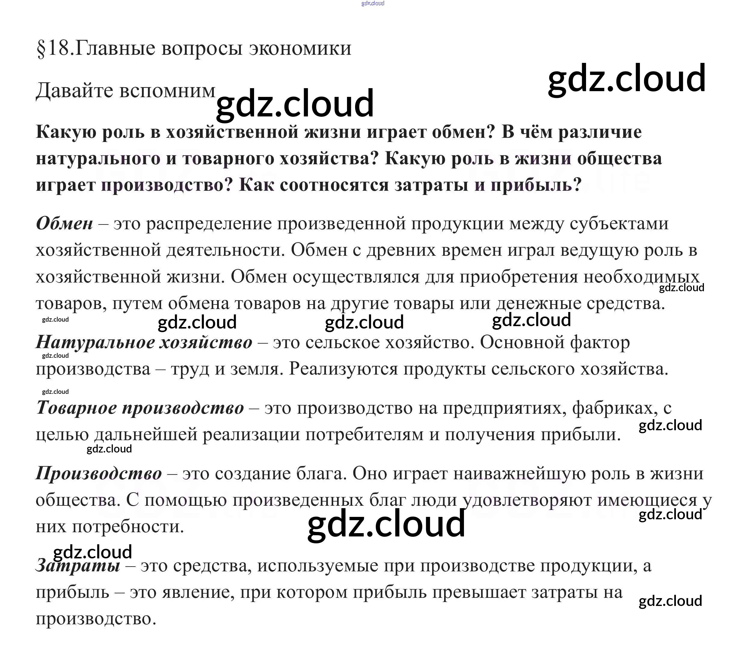 Вспомним §18. Главные вопросы экономики по Обществознанию 8 класс Учебник Боголюбов Академический школьный учебник Просвещение