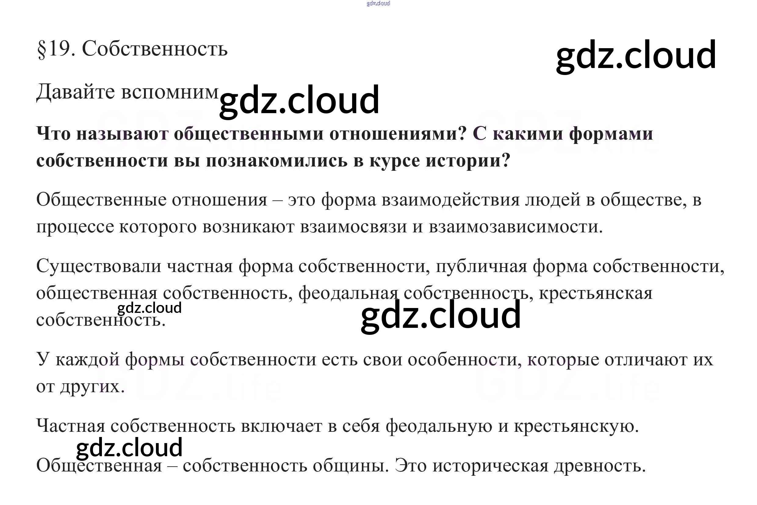 Вспомним §19. Собственность по Обществознанию 8 класс Учебник Боголюбов Академический школьный учебник Просвещение